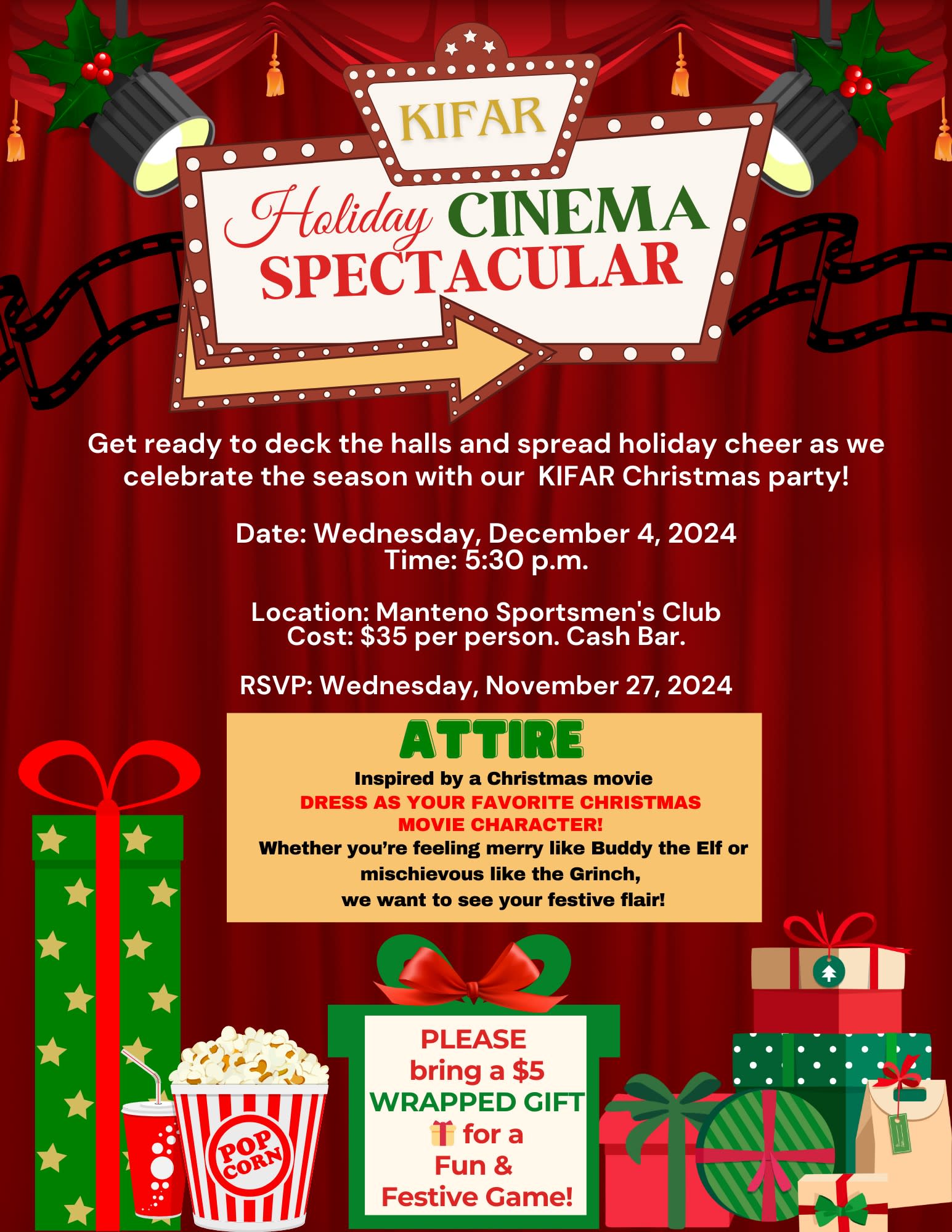 Dress as your favorite Christmas Movie Character. Please bring a $5 wrapped gift for a fun & festive game! RSVP by Wednesday, November 27, 2024.